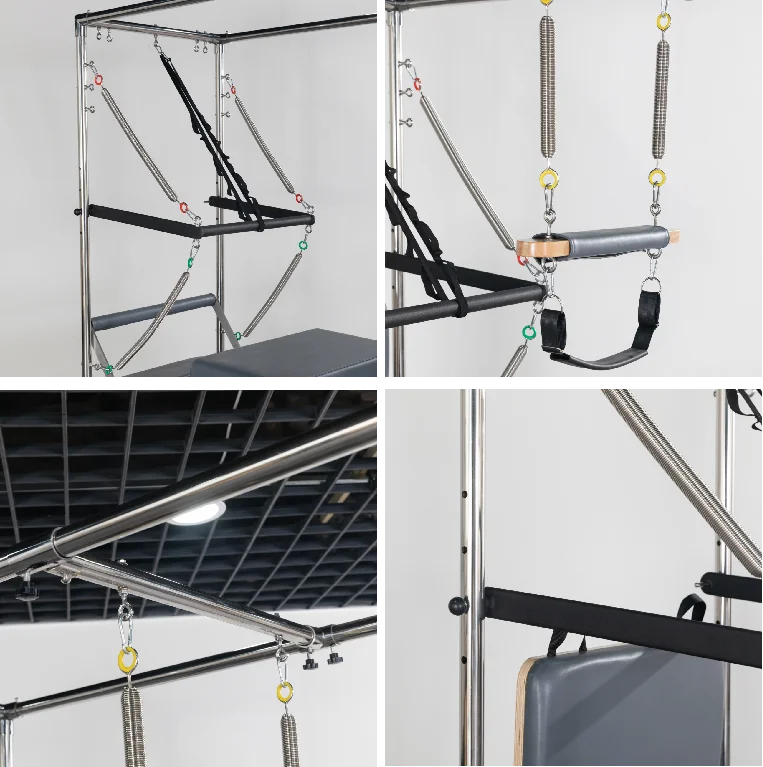 - Adjustable Handrail – Rope wheel lift rod for convenient Pilates training